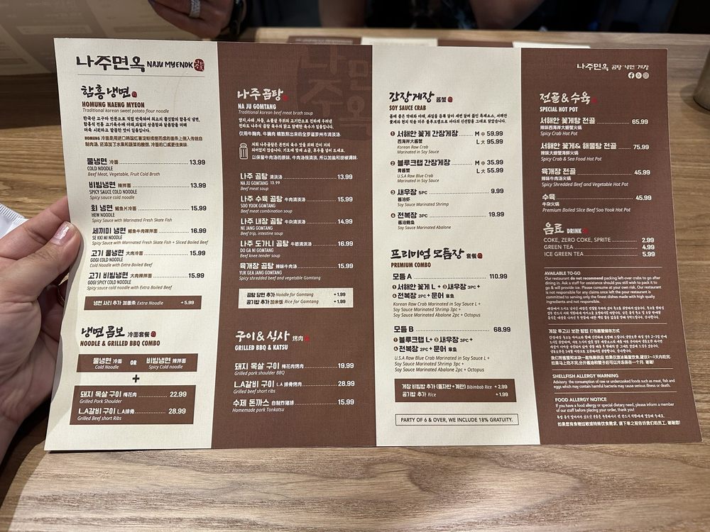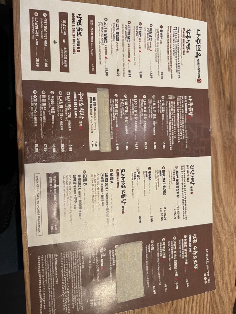 NAJU MYEONOK CARROLLTON 나주면옥 캐롤튼 Menu
